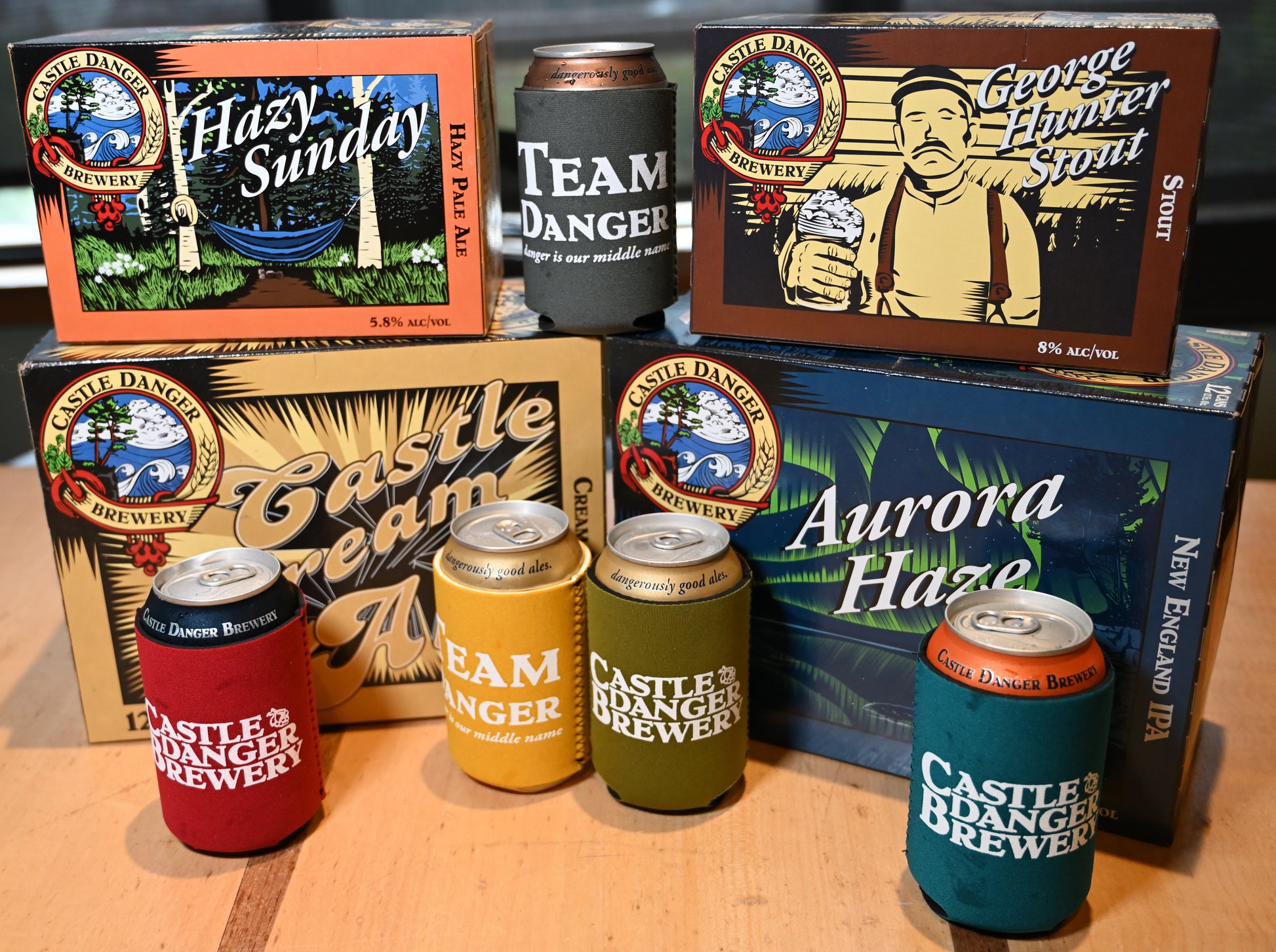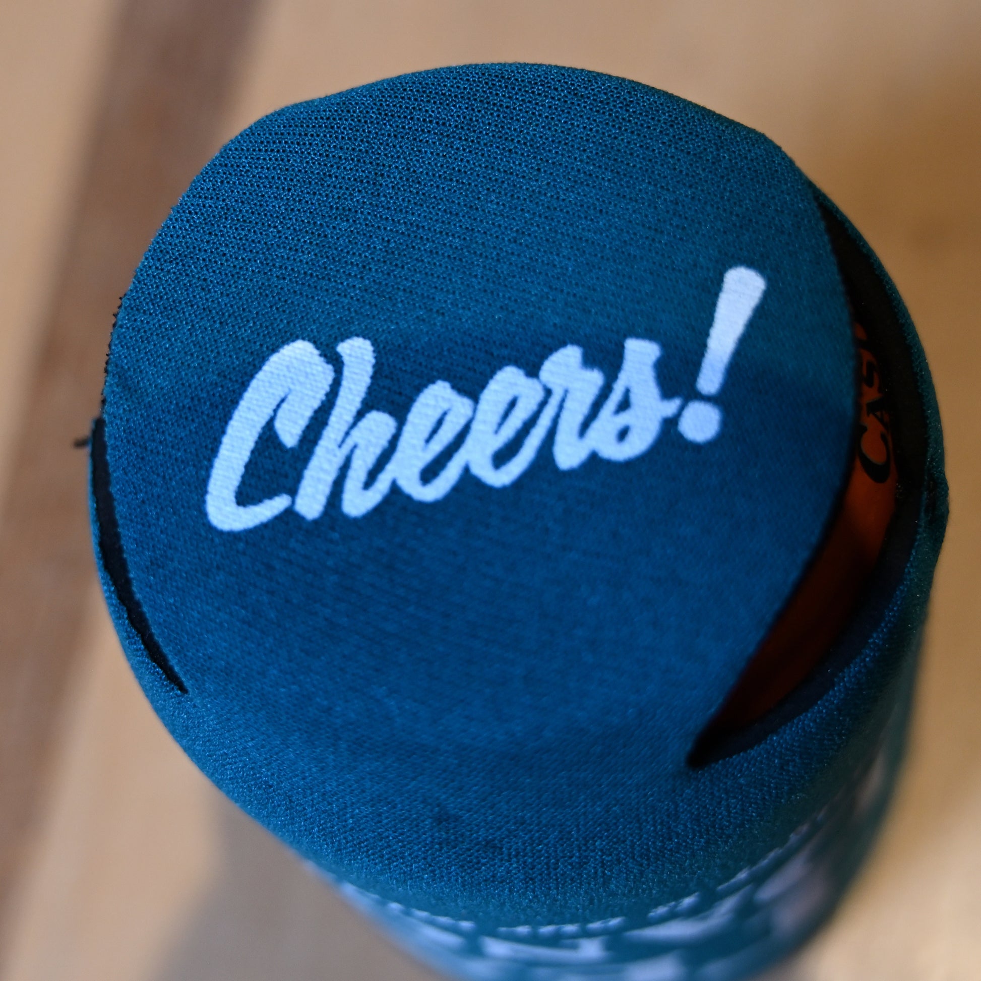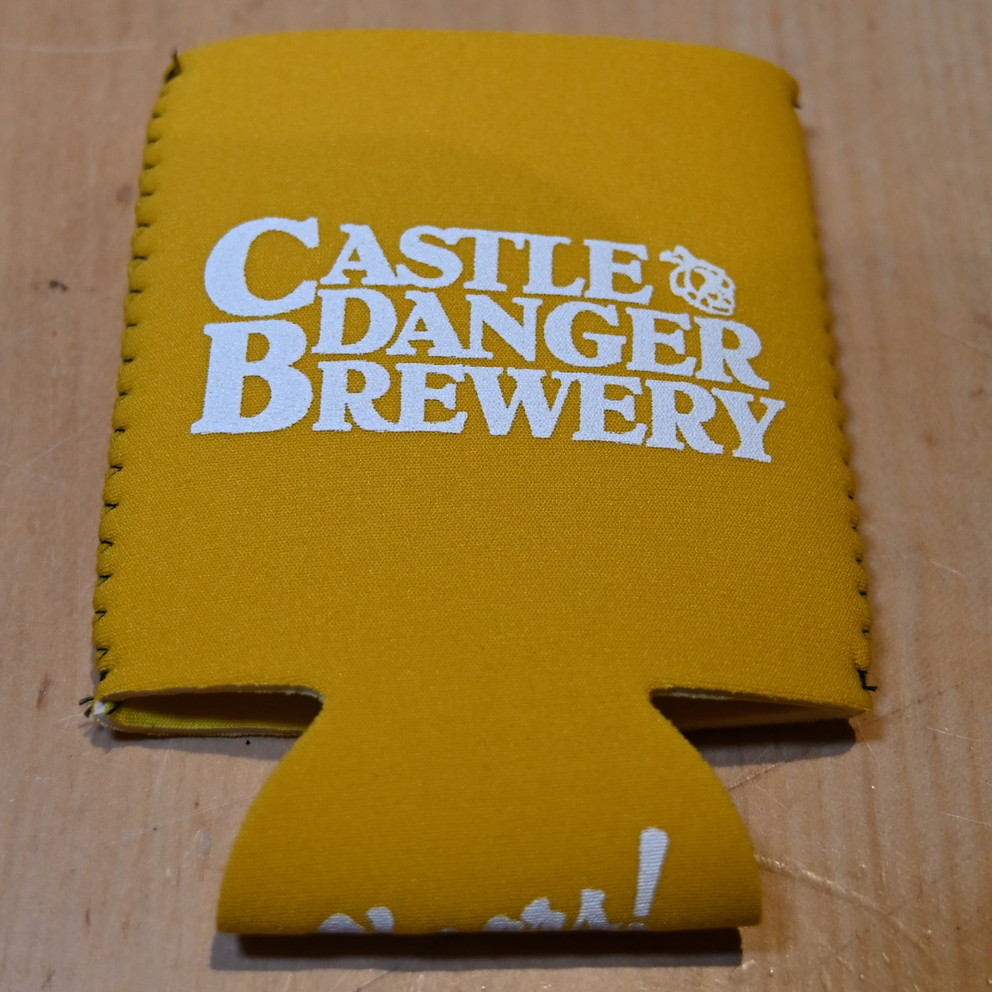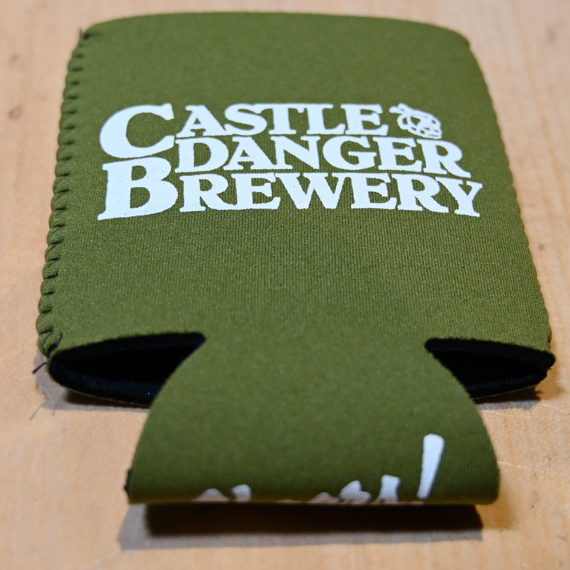 Can Coolies with Castle Danger Text Logo on front and Team Danger Logo on back with Cheers! on the bottom