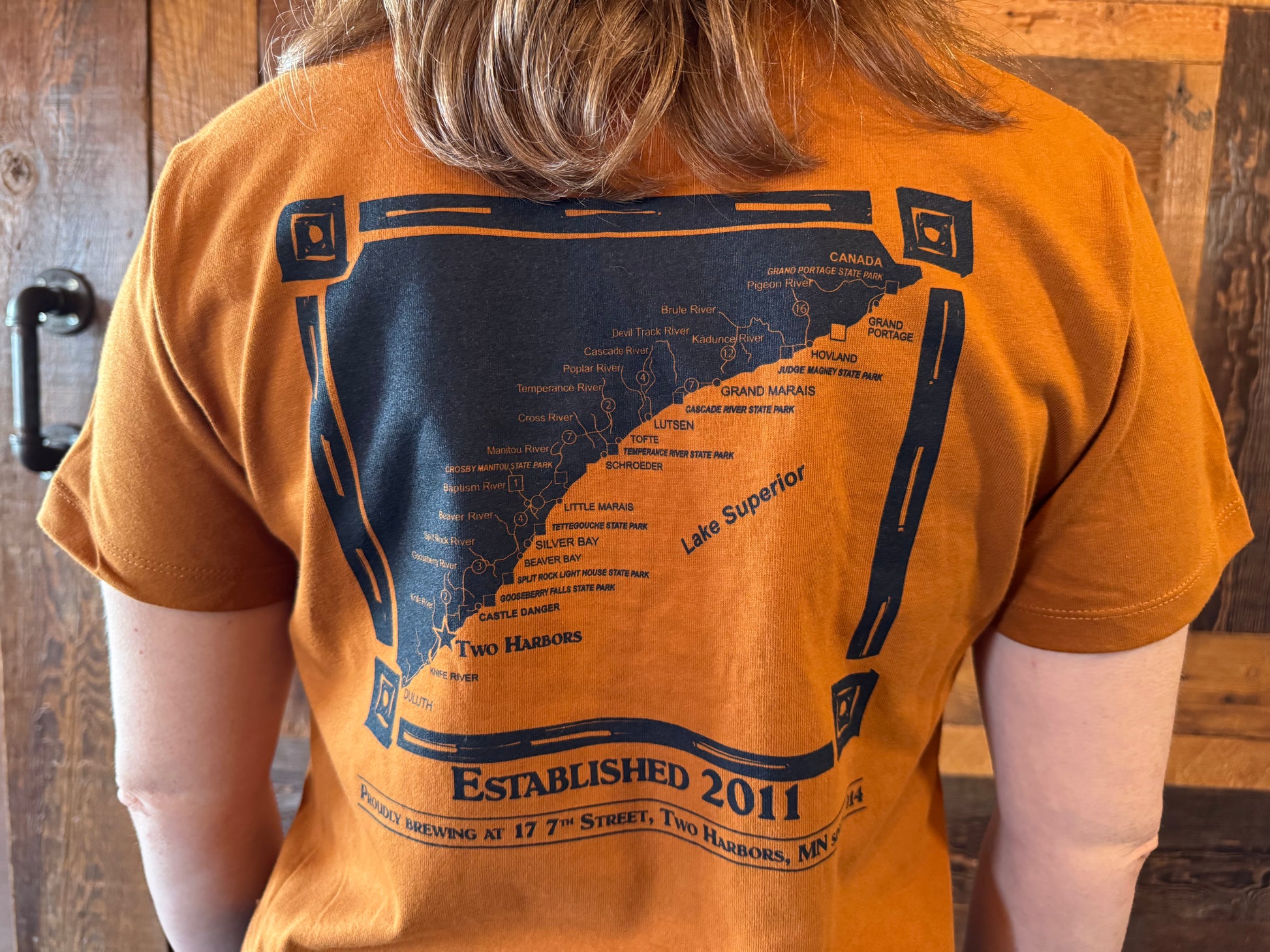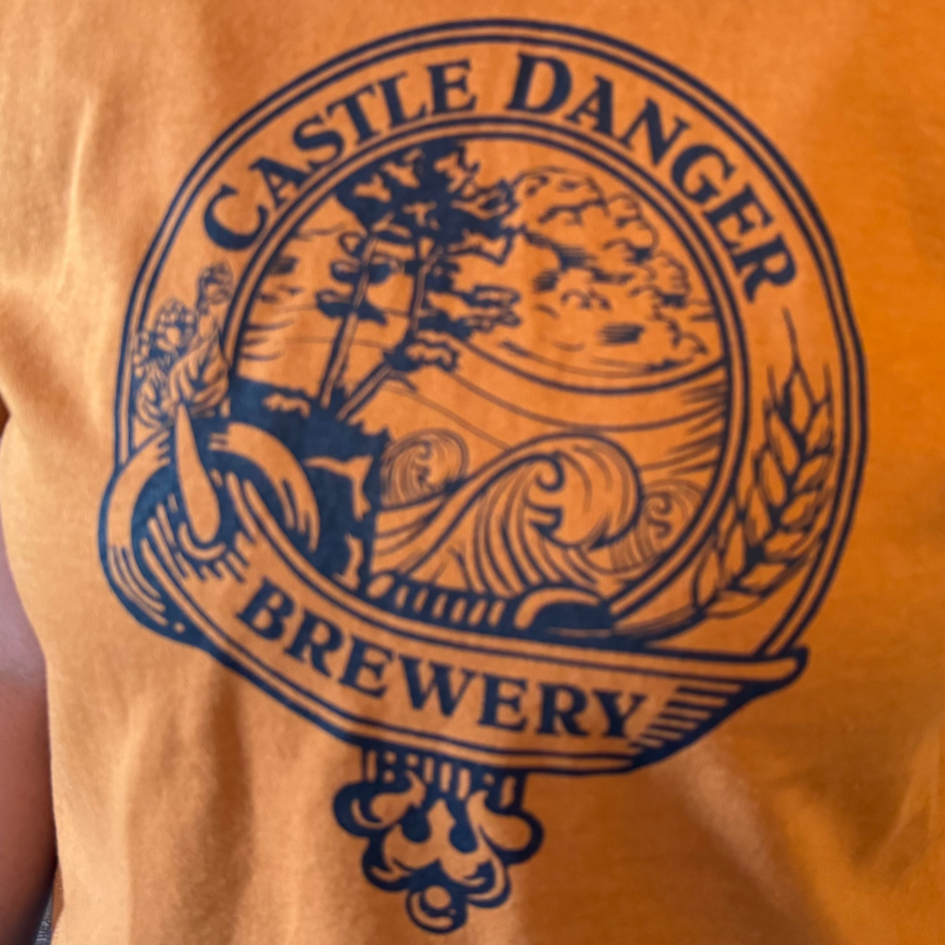 Women's High Waist Boxy T-Shirt with black original Castle Danger Logo on the front and map of the NorthShoe on the back